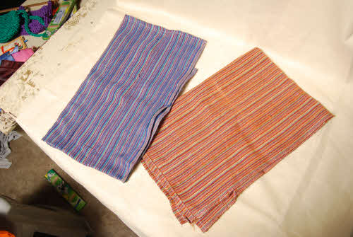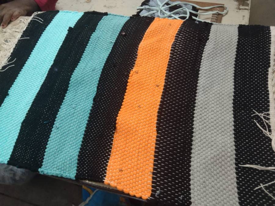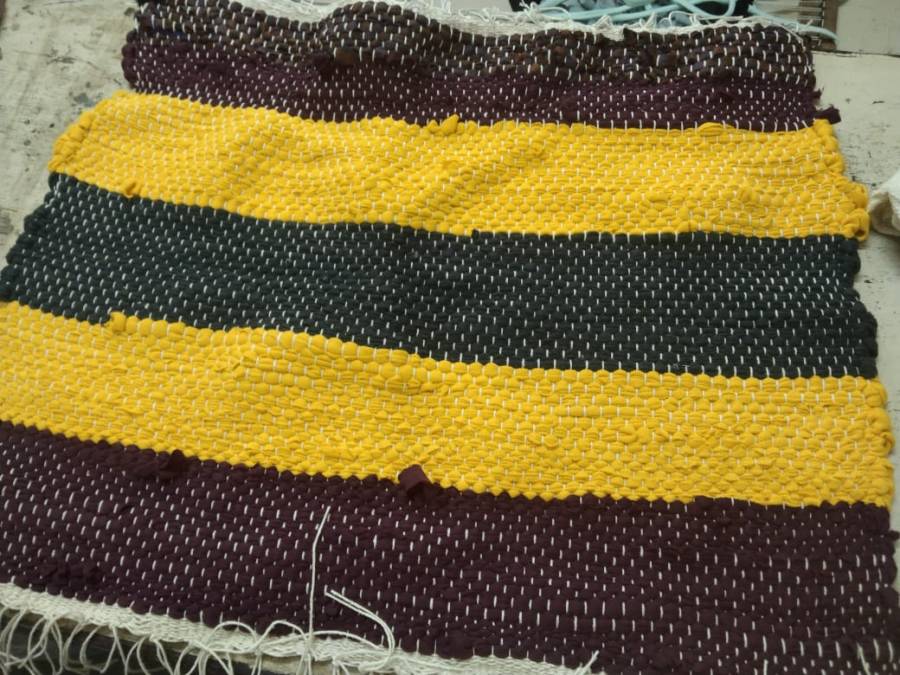 At DSSCWA, the special children and adults spend most of their time working on the weaving looms in our workshop. We have several weaving products including doormats (small and large), kitchen towels and mopping cloths. The yarn for weaving is made of cloth from old cotton saris.